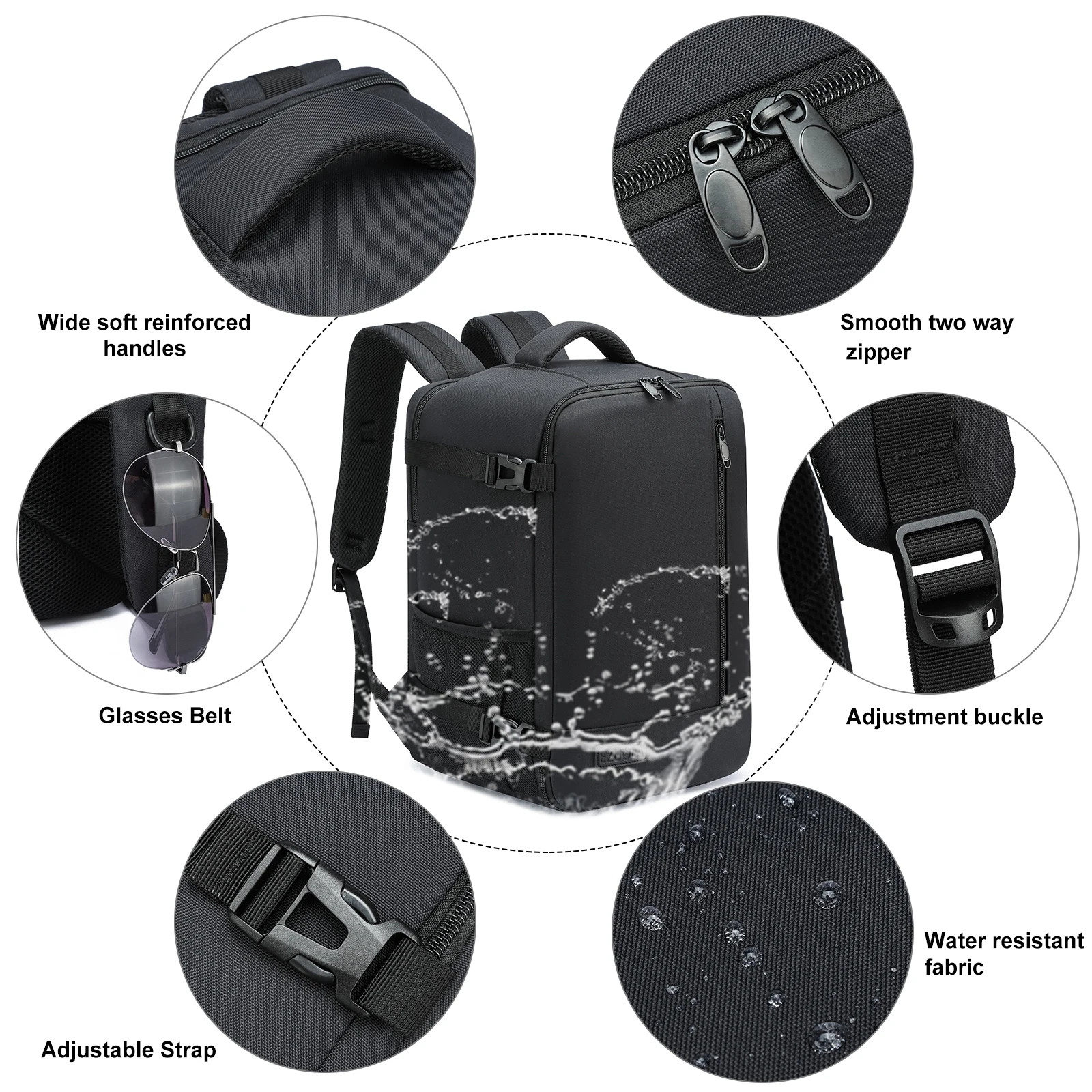 Fabricada com material resistente e durável, esta mochila é feita para acompanhar o teu ritmo. As alças ajustáveis garantem conforto mesmo quando totalmente cheia. E o melhor? Cabe debaixo do assento à tua frente — sem preocupações no embarque. 🙌